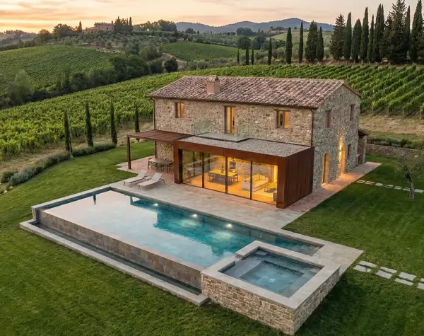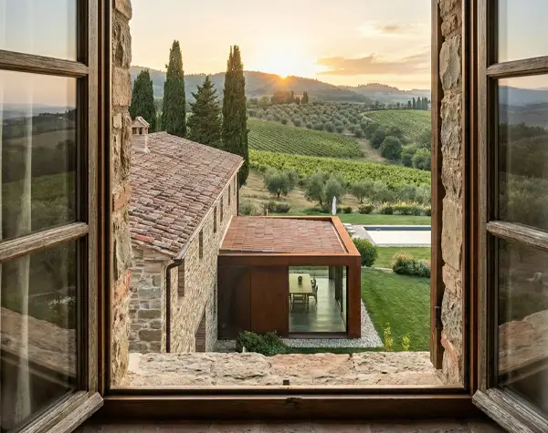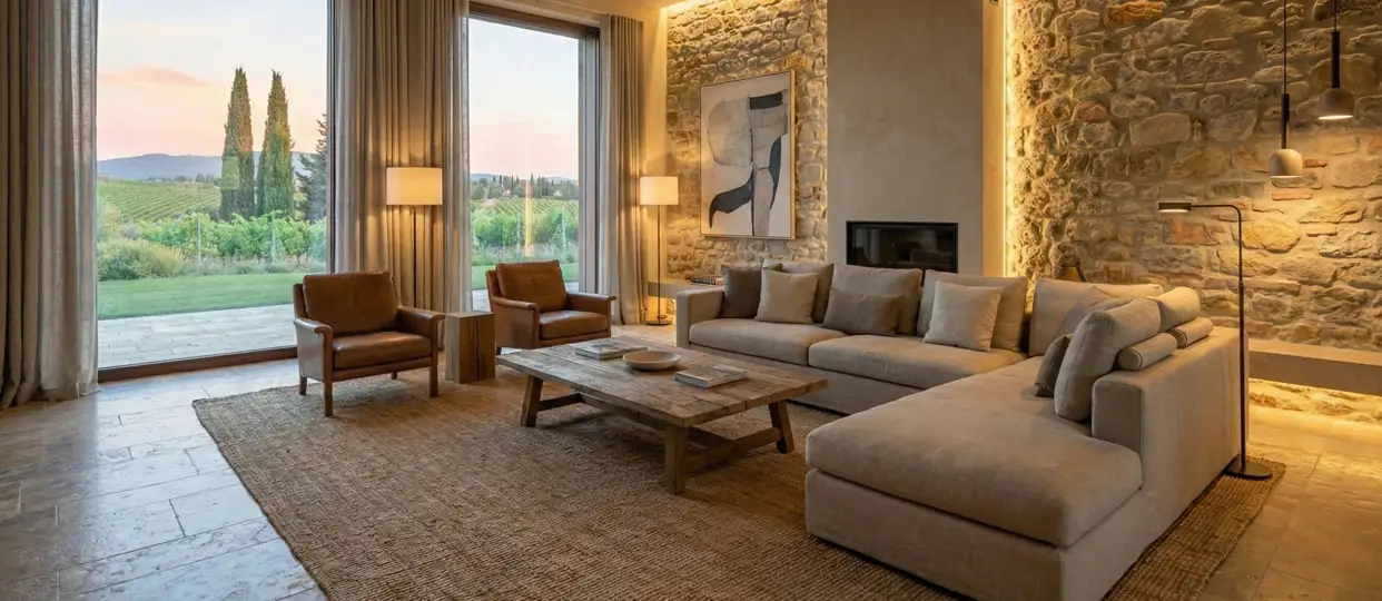 Questo casale immerso nel cuore delle colline toscane è il risultato di un restauro che celebra il fascino rurale attraverso innesti di design minimalista. La matericità di pietra e cotto incontra un'estetica raffinata, trasformando la tradizione in un rifugio moderno, caldo e sostenibile.